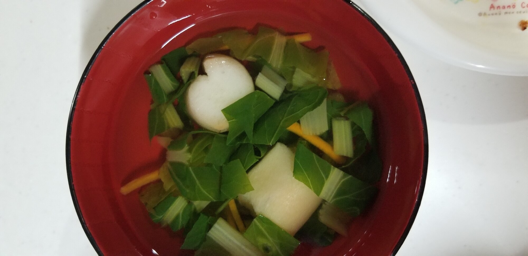 小松菜、お麩のお吸い物